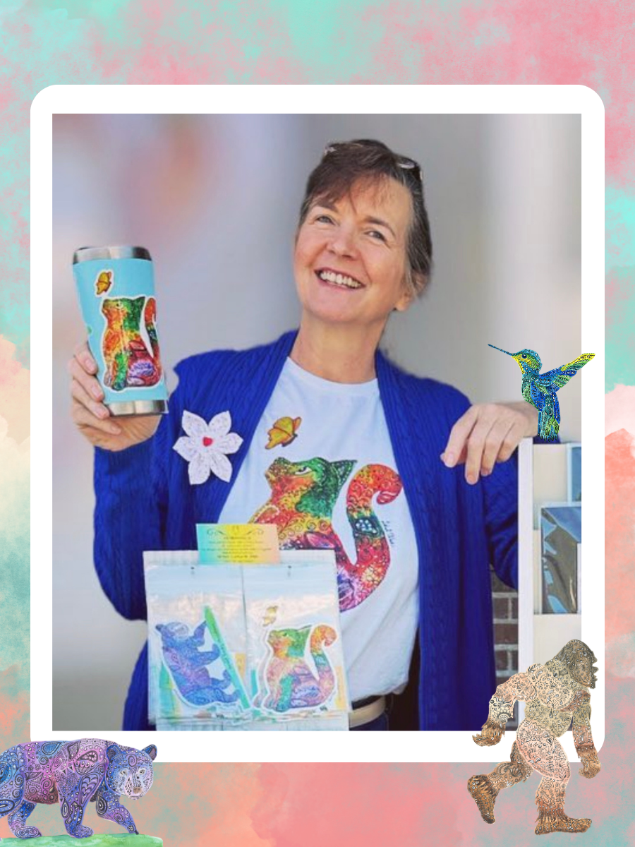 Letha Eller is the mastermind behind the Hennamals, a collection of whimsical and funky animals sure to bring a smile to anyone's face. Each Hennamal is created using a unique fusion of watercolor and ink designs inspired by ancient Mehndi (henna) tattoos.
