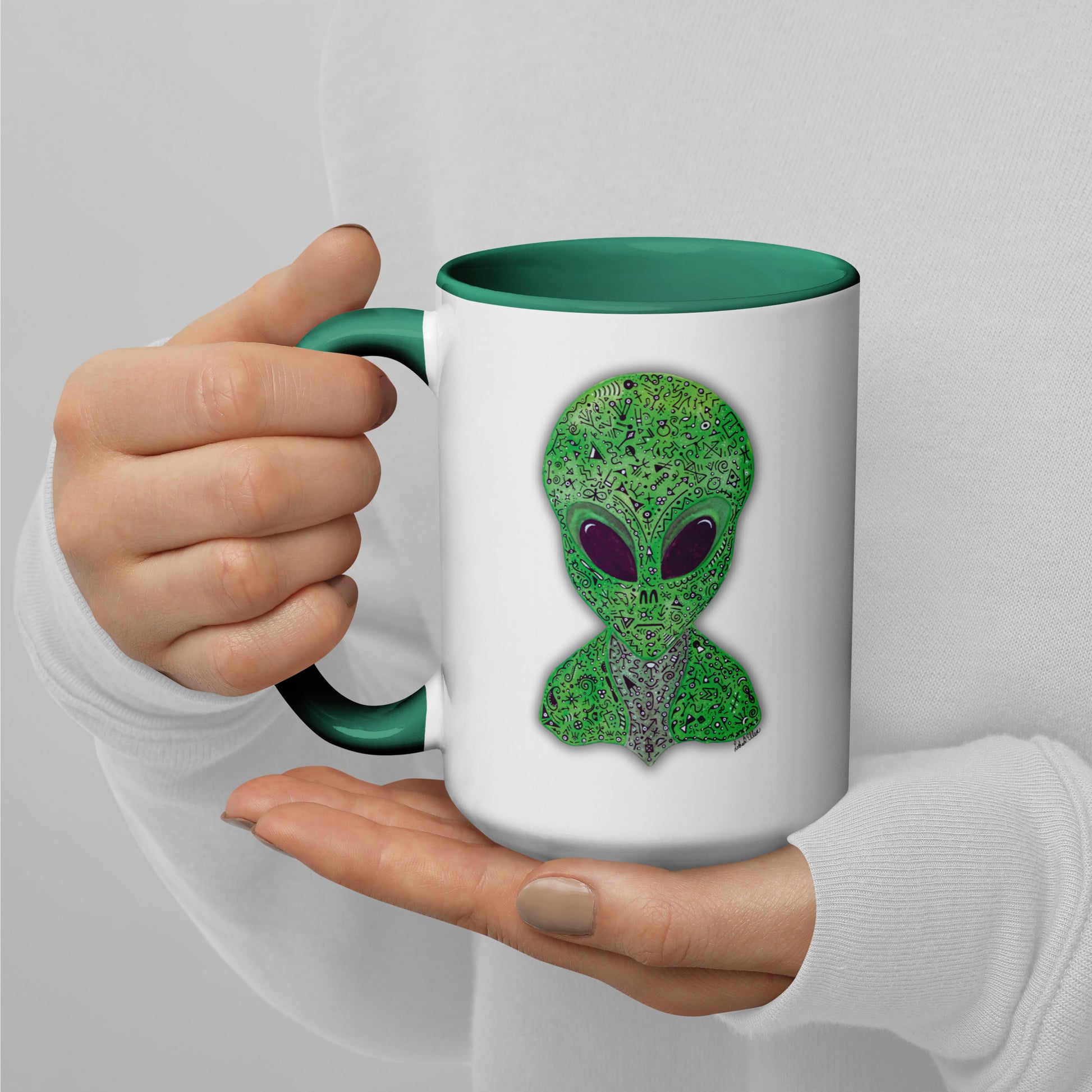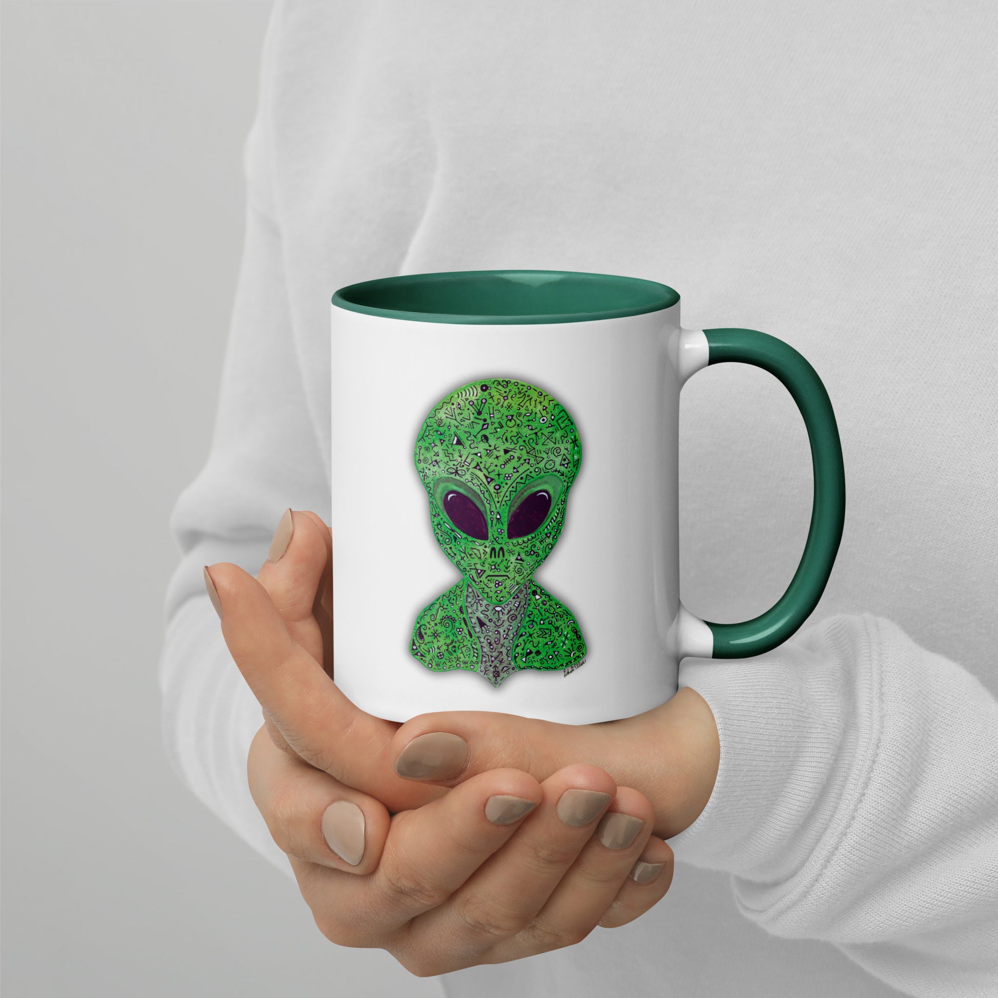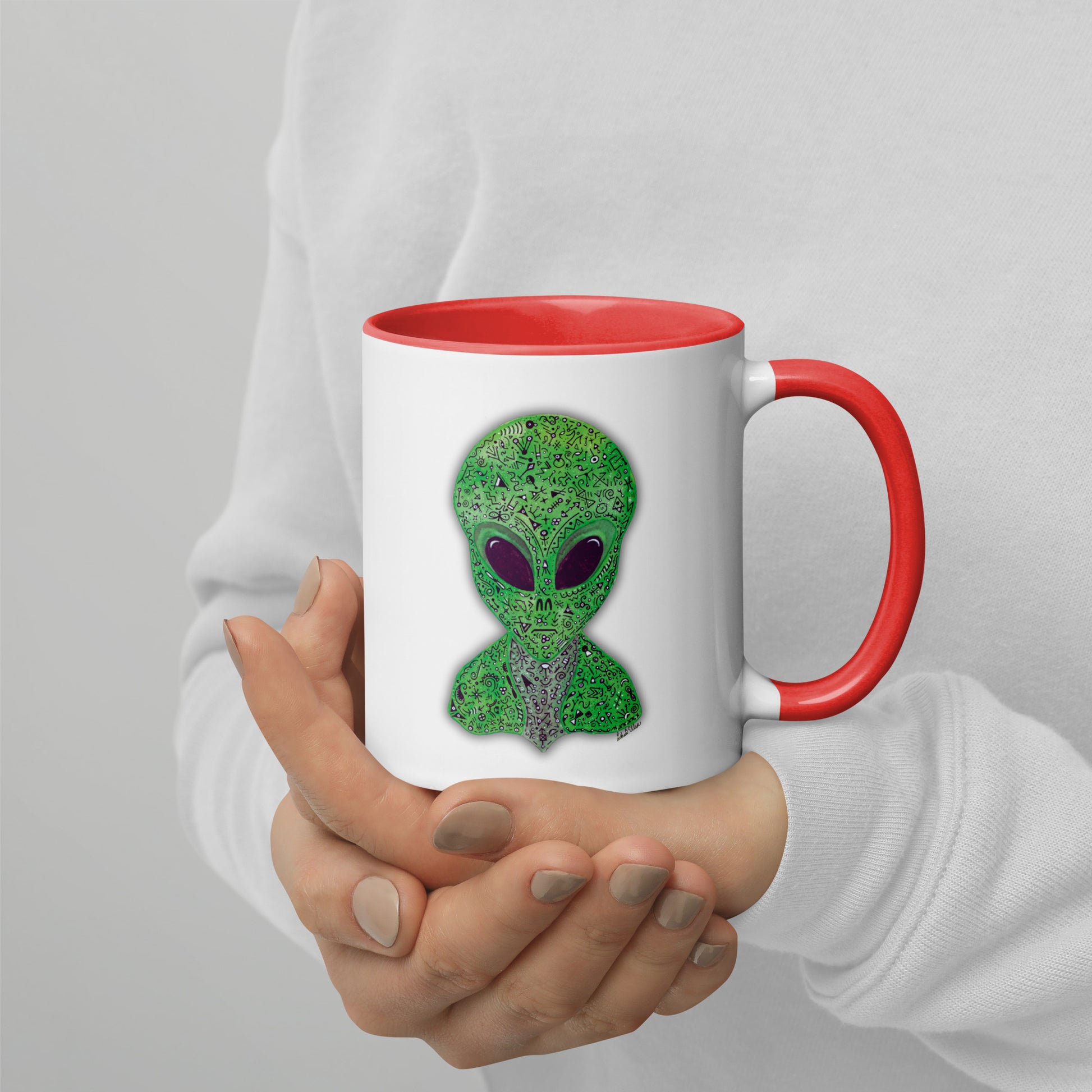 Alien Mug with Colorful Interior, Original Painting, Extraterrestrial Art, Unique Coffee Cup, Perfect Gift for SciFi Lovers, Cosmic Alien Mug