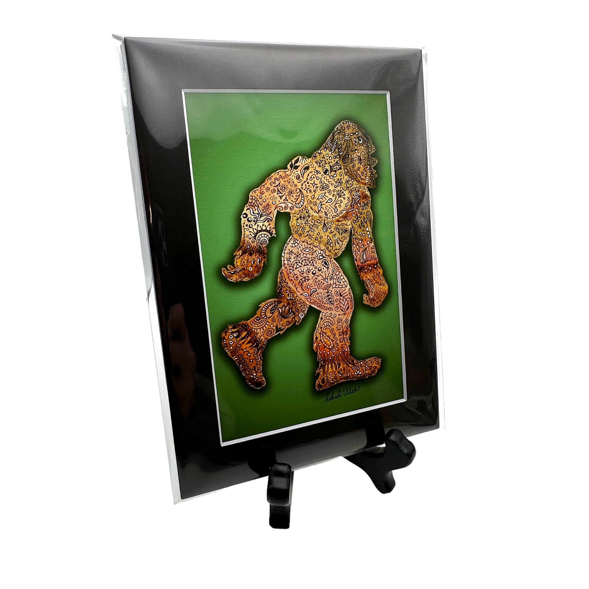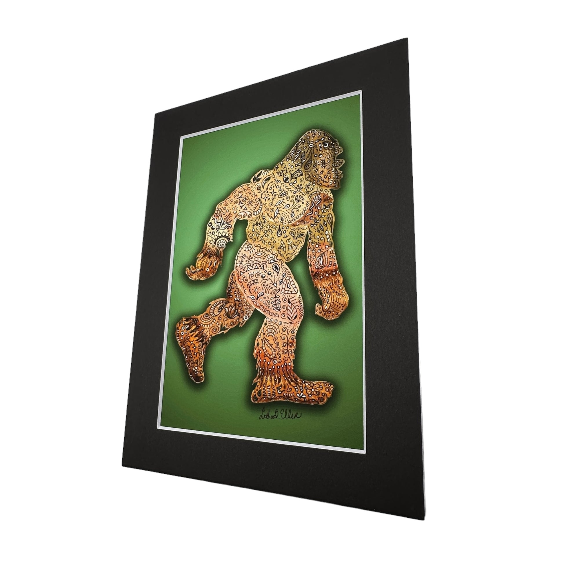 Crafted using high-quality giclee printing techniques on premium paper, this art print offers a fade-resistant image that retains the depth and texture of the original painting. The black mat not only adds an elegant border but also prepares the print for framing into a standard size frame (5x7, 8x10. 11x14), making it easy to integrate into your existing decor. Whether displayed in your living room, study, or given as a gift, this Bigfoot print is sure to captivate and spark conversations.
