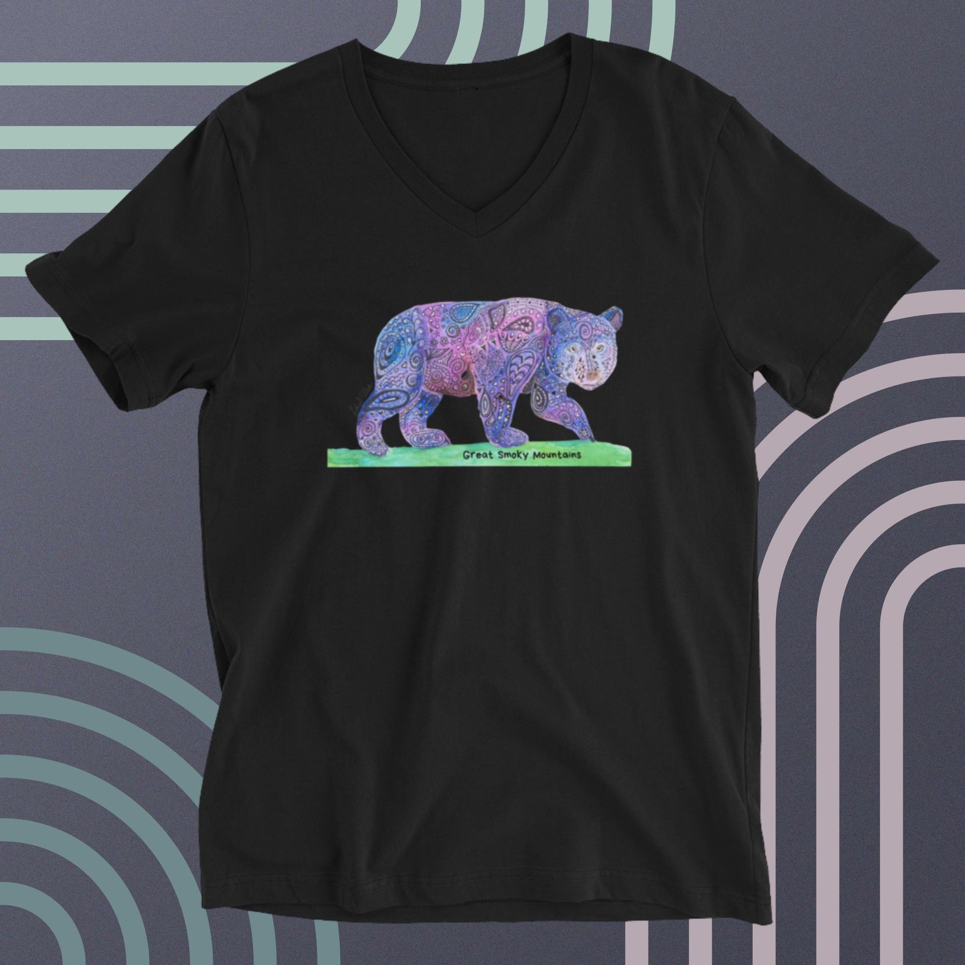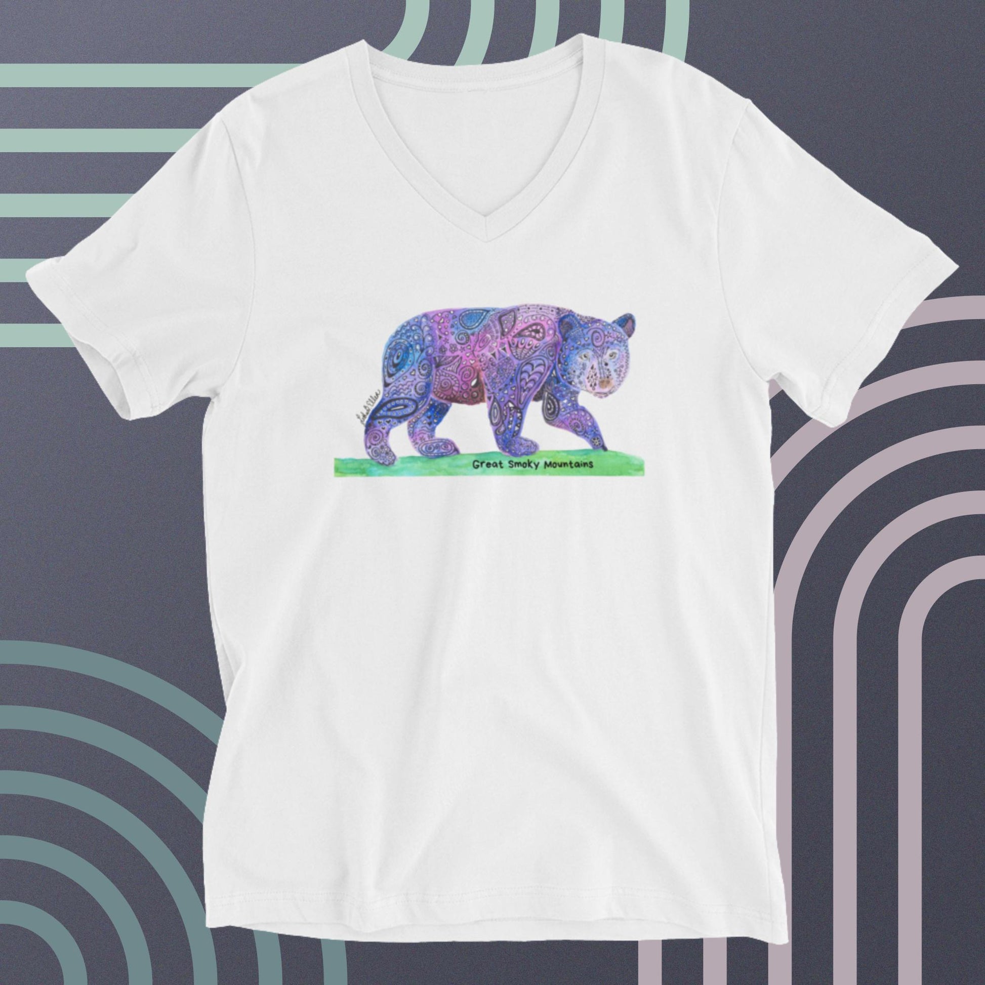 Smoky Mountain Bear Unisex Short Sleeve V-Neck T-Shirt